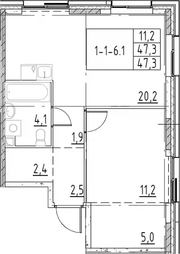 2-к.квартира, 47.3 м², 18 эт. в ЖК Shagal Корпус 6.1 оч.3