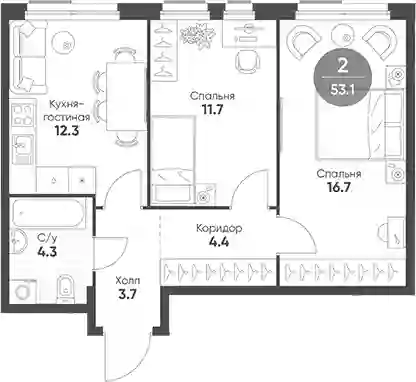 34 269 730 ₽3-к.квартира, 53.1 м², 2 эт.