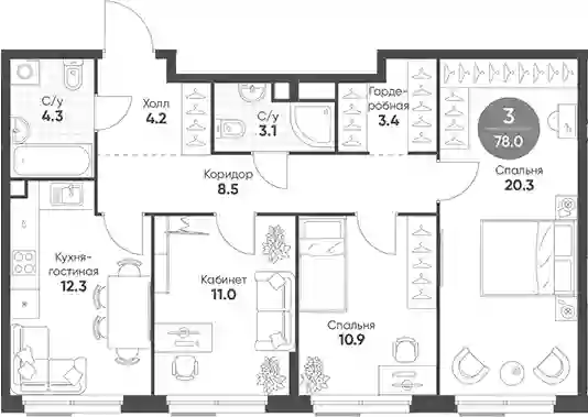 42 201 523 ₽3-к.квартира, 76.8 м², 34 эт.
