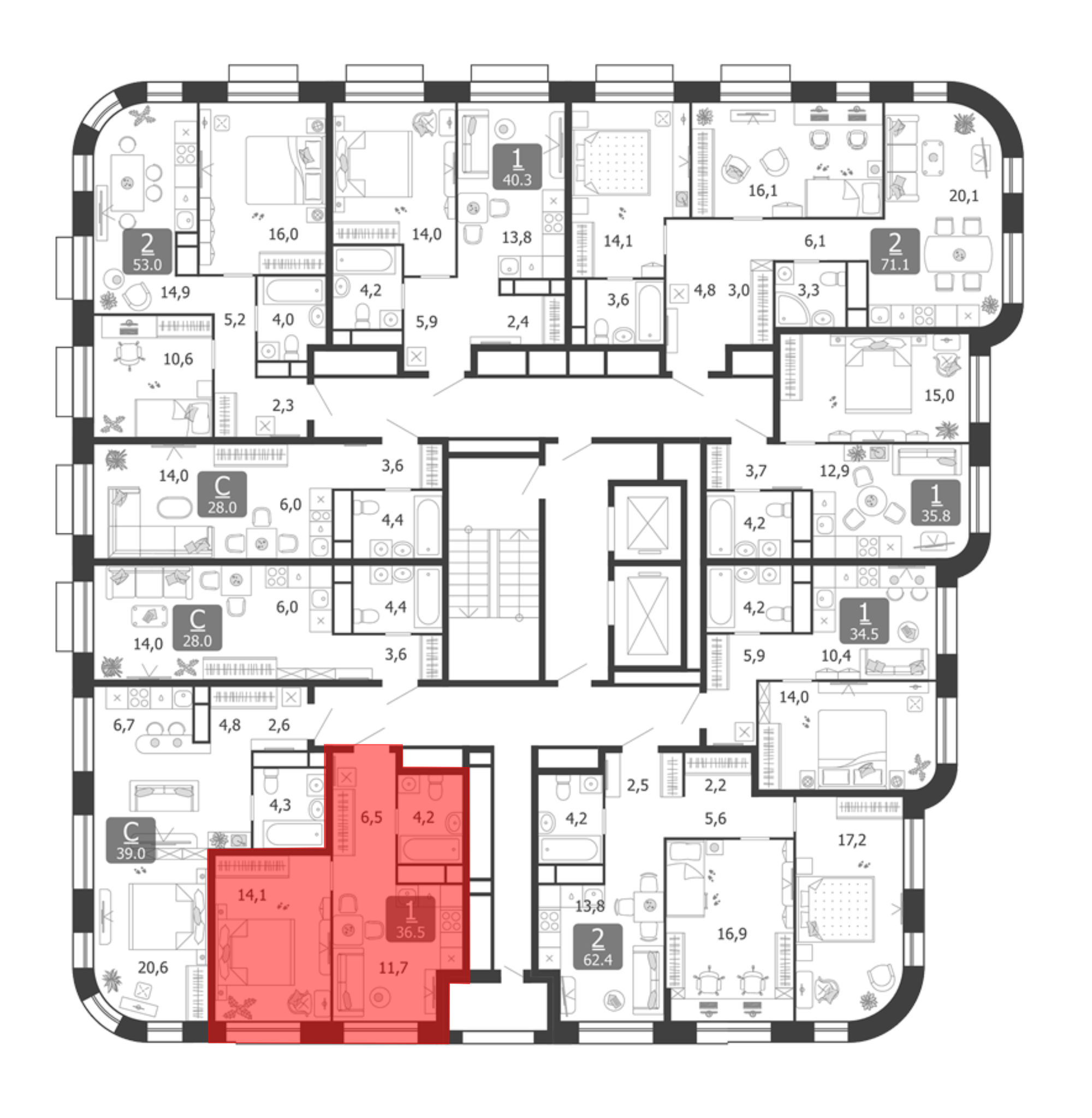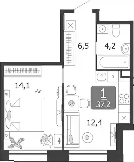 24 155 004 ₽1-к.квартира, 36.5 м², 12 эт.