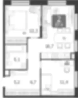 32 249 739 ₽2-к.квартира, 56.6 м², 3 эт.