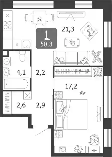 28 122 858 ₽2-к.квартира, 50.2 м², 18 эт.