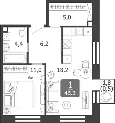 31 018 526 ₽2-к.квартира, 44.8 м², 10 эт.