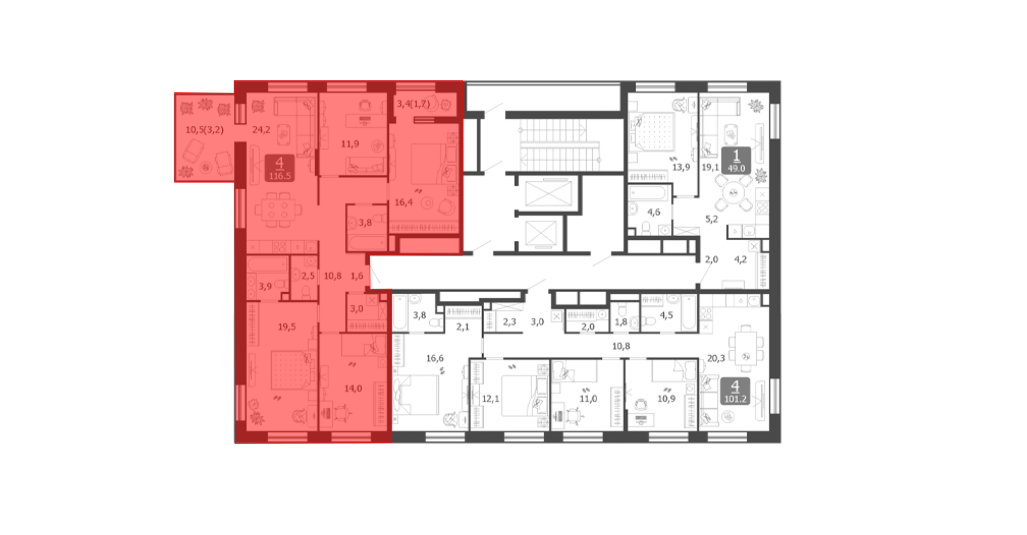 59 403 878 ₽4-к.квартира, 106.6 м², 16 эт.
