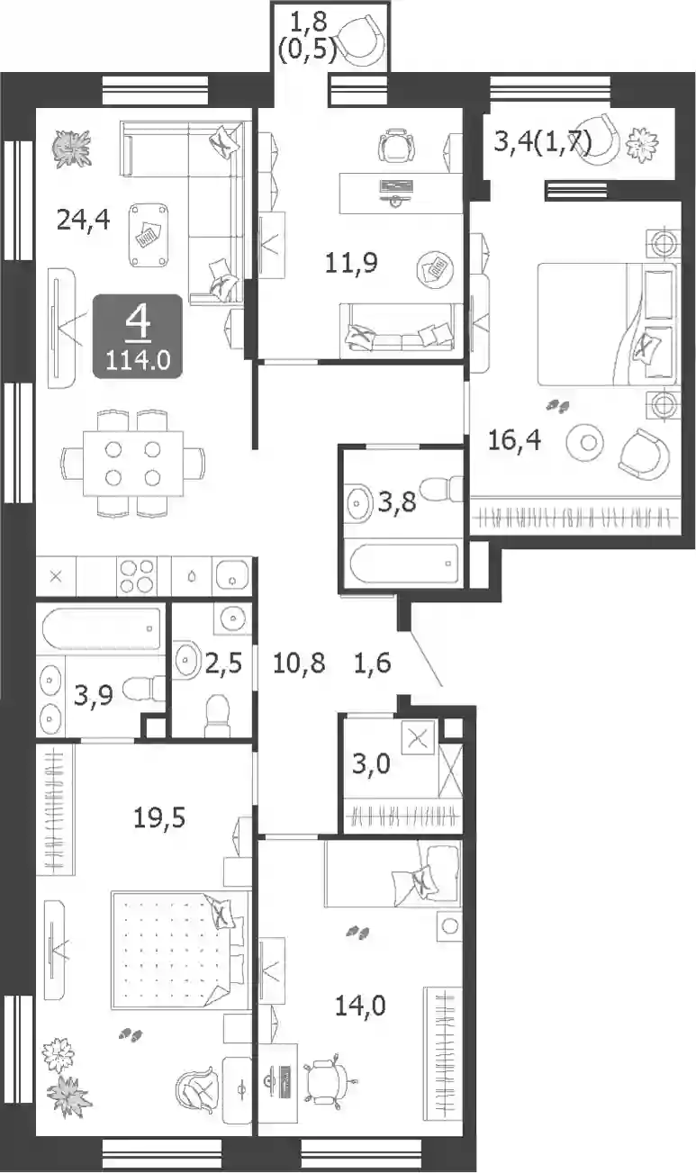 5+к.квартира, 111.8 м², 19 эт. в ЖК Shagal Корпус 8 оч.3