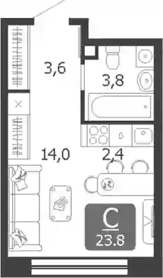 19 804 570 ₽Студия, 23.8 м², 10 эт.