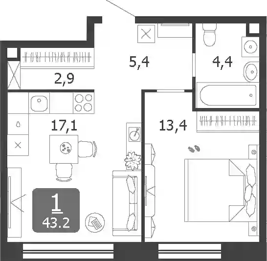29 860 472 ₽2-к.квартира, 43.2 м², 19 эт.