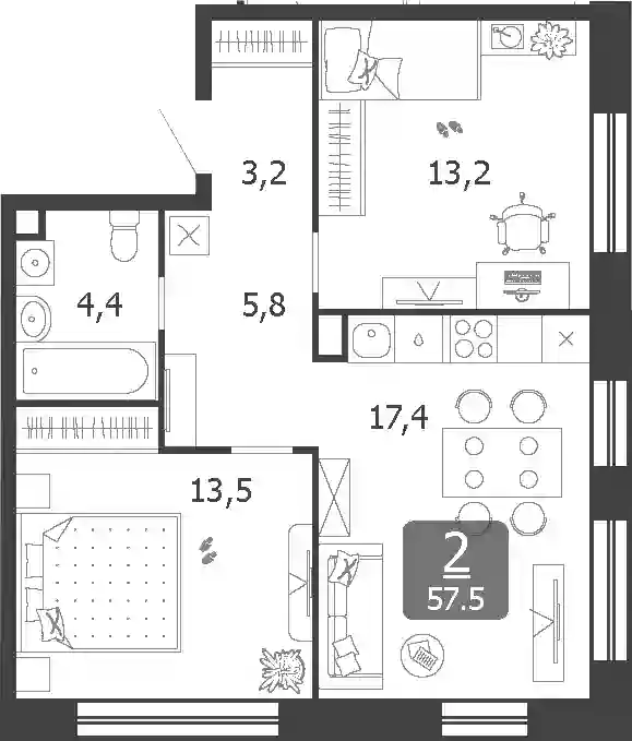 57.5 м2