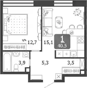 24 995 466 ₽2-к.квартира, 40.5 м², 27 эт.