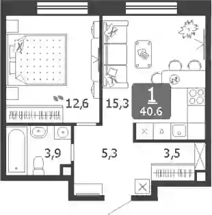 26 595 062 ₽2-к.квартира, 40.6 м², 5 эт.