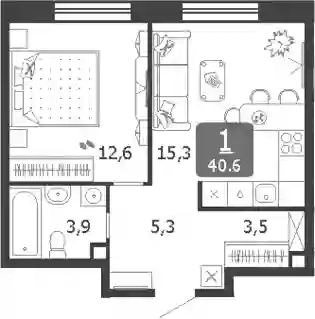 24 864 137 ₽1-к.квартира, 40.5 м², 3 эт.