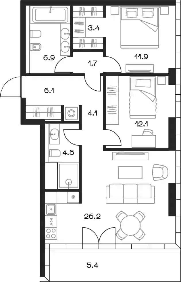 3-к.квартира, 75.2 м², 3 эт. в ЖК SHIFT Корпус 3