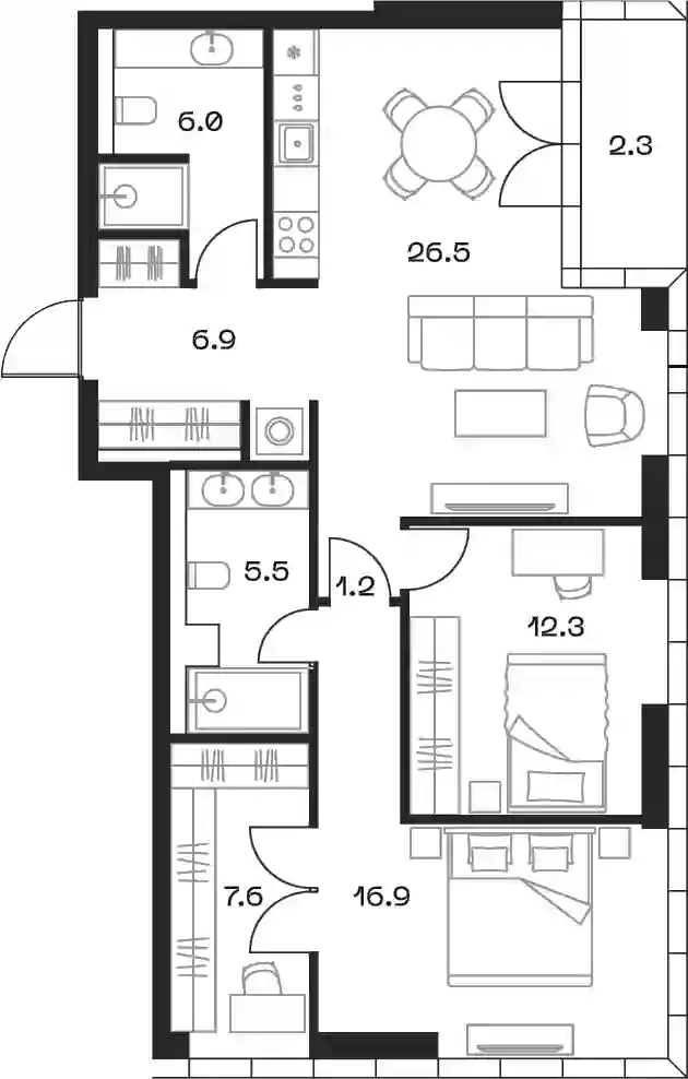 3-к.квартира, 75.3 м², 2 эт. в ЖК SHIFT Корпус 3