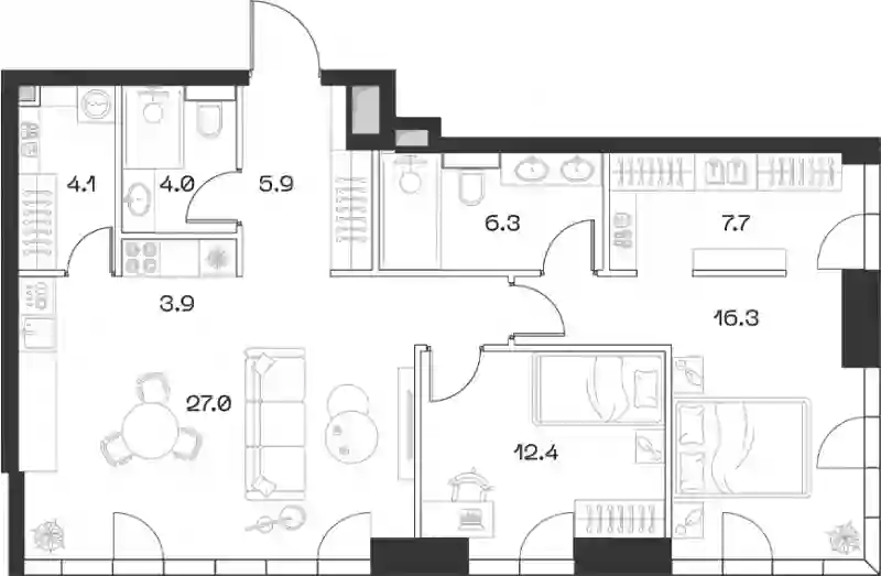 125 451 172 ₽4-к.квартира, 102.4 м², 9 эт.