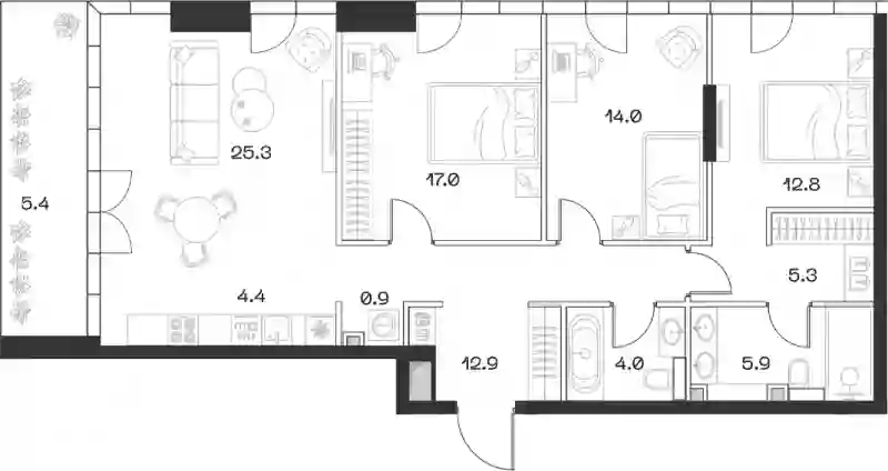 118 453 280 ₽3-к.квартира, 110 м², 13 эт.