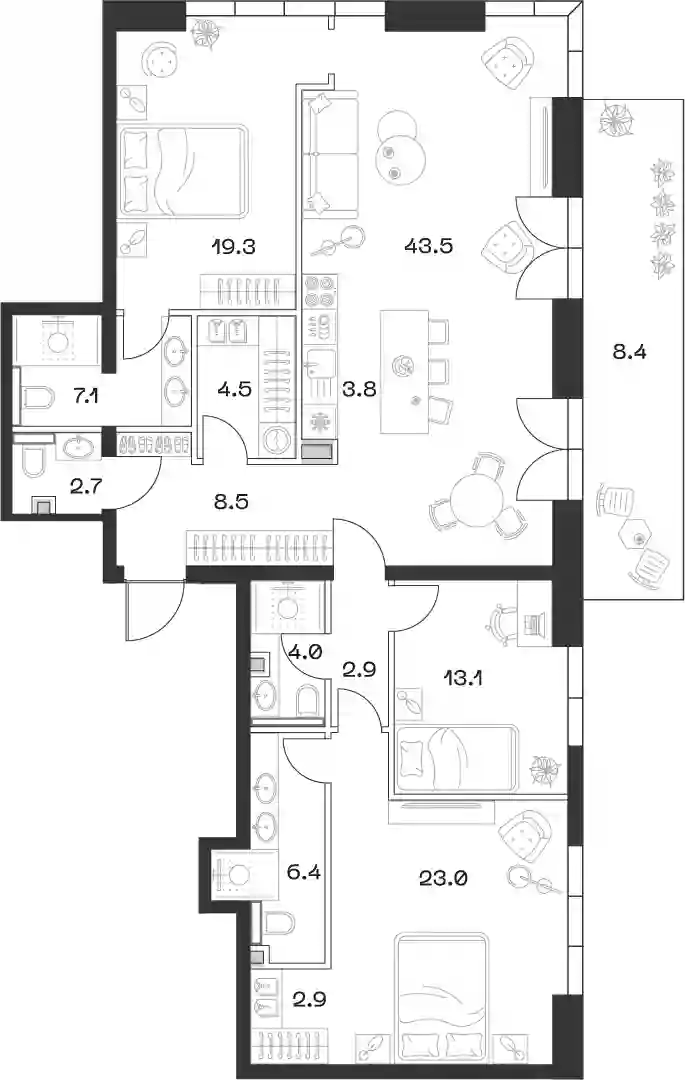 136 986 980 ₽4-к.квартира, 135.6 м², 8 эт.