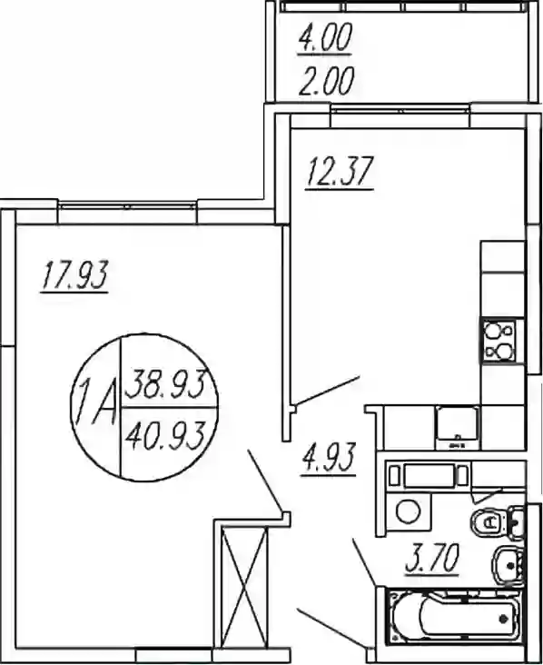 8 600 737 ₽1-к.квартира, 38.93 м², 1 эт.