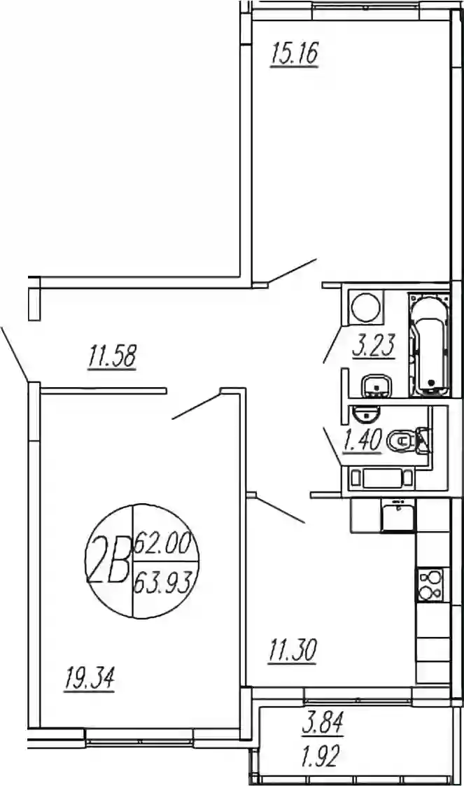 10 688 400 ₽2-к.квартира, 62.93 м², 4 эт.