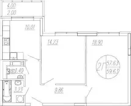 9 921 706 ₽2-к.квартира, 59.77 м², 4 эт.