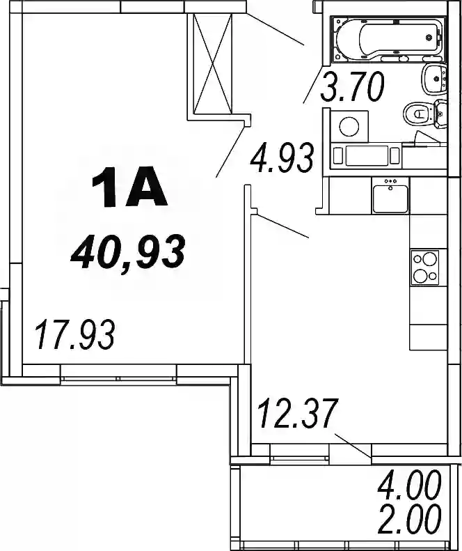 7 408 330 ₽1-к.квартира, 38.93 м², 4 эт.