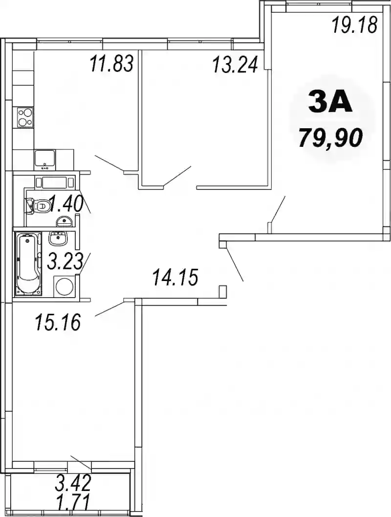 3-к.квартира, 78.19 м², 4 эт. в ЖК Шолохово Корпус 17
