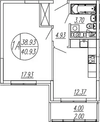 7 012 179 ₽1-к.квартира, 38.93 м², 1 эт.