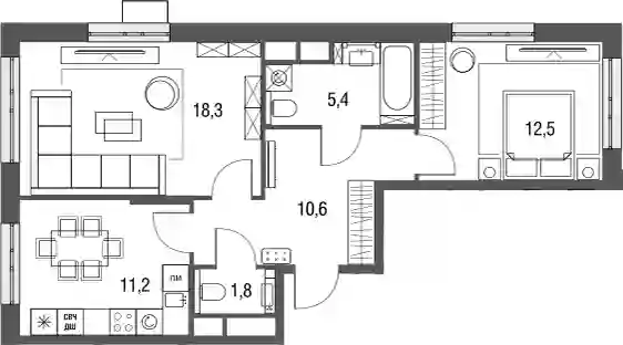 2-к.квартира, 59.8 м², 9 эт. в ЖК Сиреневый парк Корпус 1