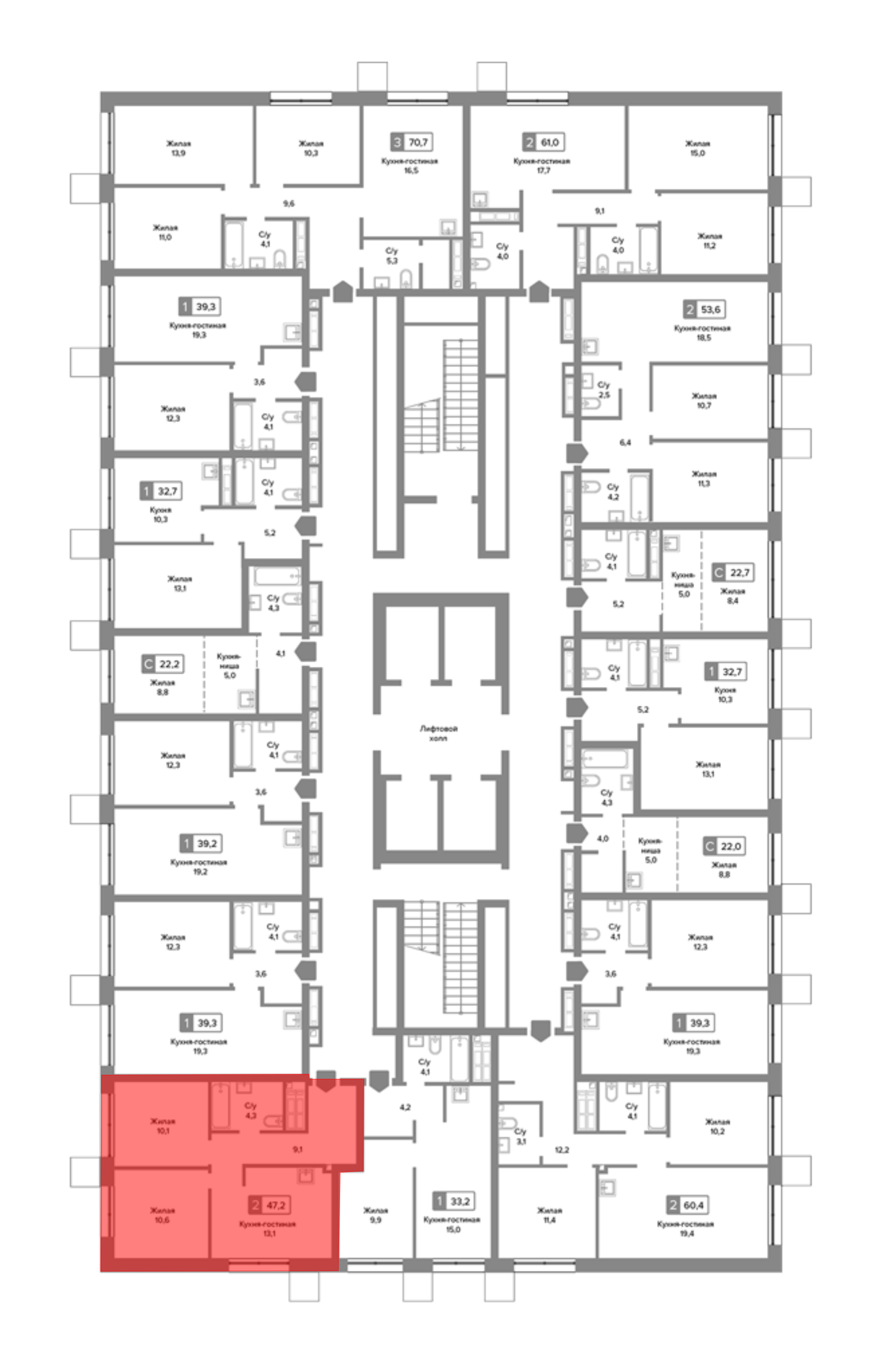 3-к.квартира, 47.2 м², 24 эт. в ЖК Сити квартал Отрада Корпус 2 Юпитер