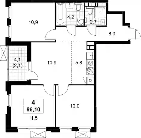 19 110 960 ₽4-к.квартира, 63.9 м², 7 эт.