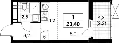 21 488 409 ₽1-к.квартира, 41.8 м², 2 эт.