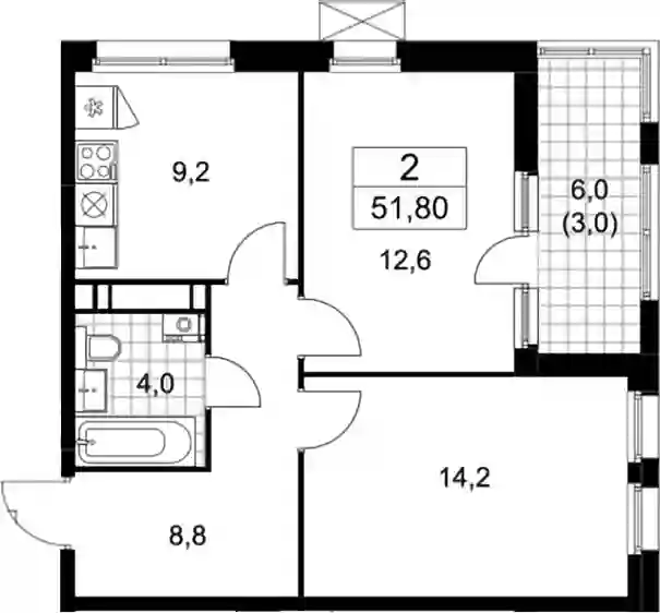 19 013 895 ₽2-к.квартира, 52.2 м², 2 эт.