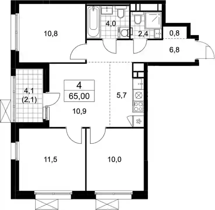 20 959 582 ₽4-к.квартира, 64.9 м², 17 эт.