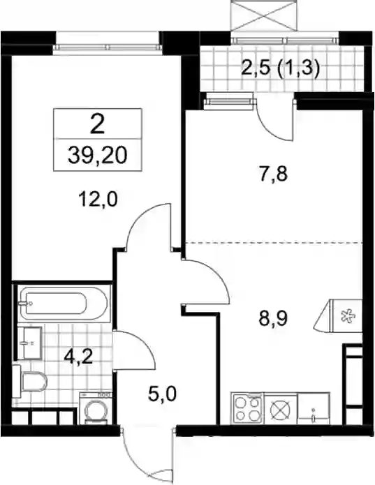 18 237 368 ₽2-к.квартира, 39.1 м², 2 эт.