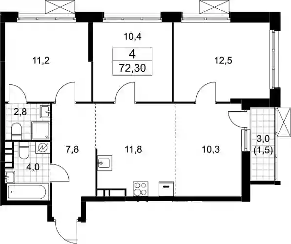 31 606 289 ₽4-к.квартира, 75.8 м², 13 эт.