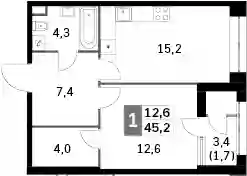 2-к.квартира, 43.5 м², 3 эт. в ЖК Sky Garden Корпус 2