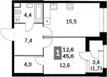 2-к.квартира, 43.9 м², 17 эт. в ЖК Sky Garden Корпус 2