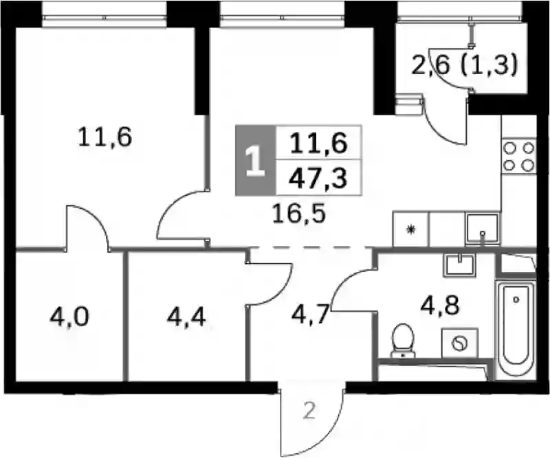 2-к.квартира, 46 м², 10 эт. в ЖК Sky Garden Корпус 3