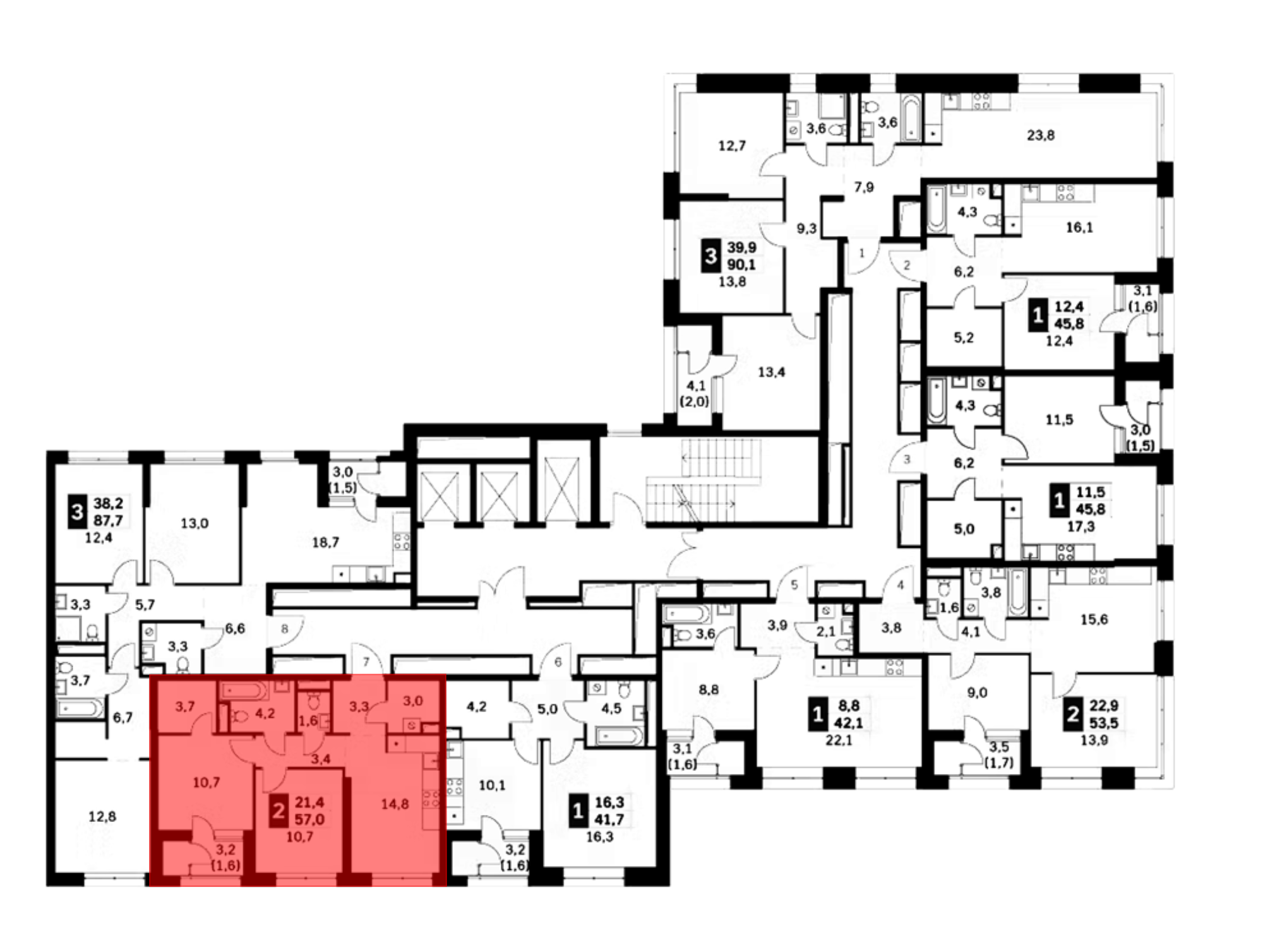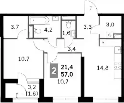 2-к.квартира, 55.4 м², 13 эт. в ЖК Sky Garden Корпус 3