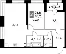 2-к.квартира, 66.6 м², 16 эт. в ЖК Sky Garden Корпус 3
