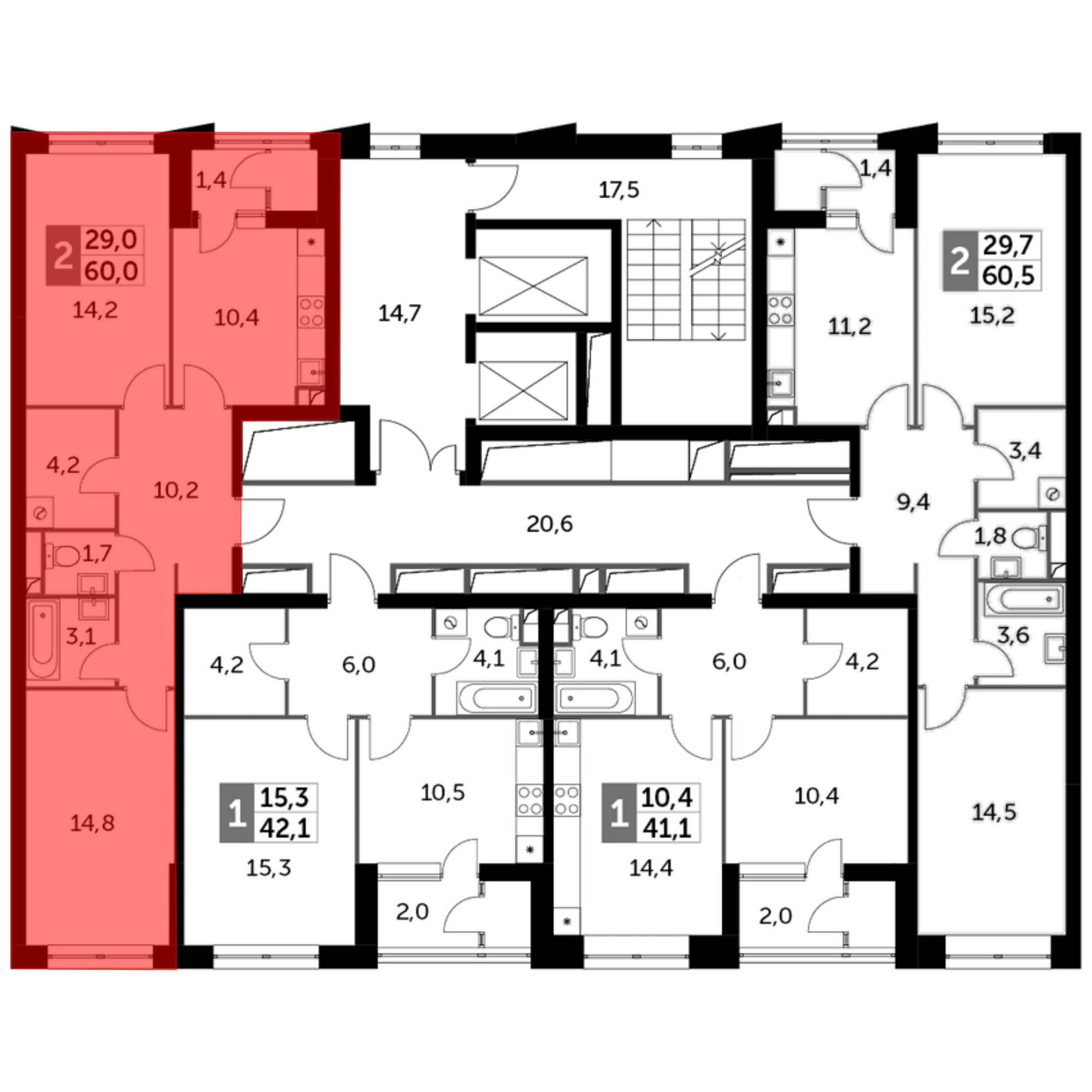 2-к.квартира, 60.6 м², 26 эт. в ЖК Sky Garden Корпус 1
