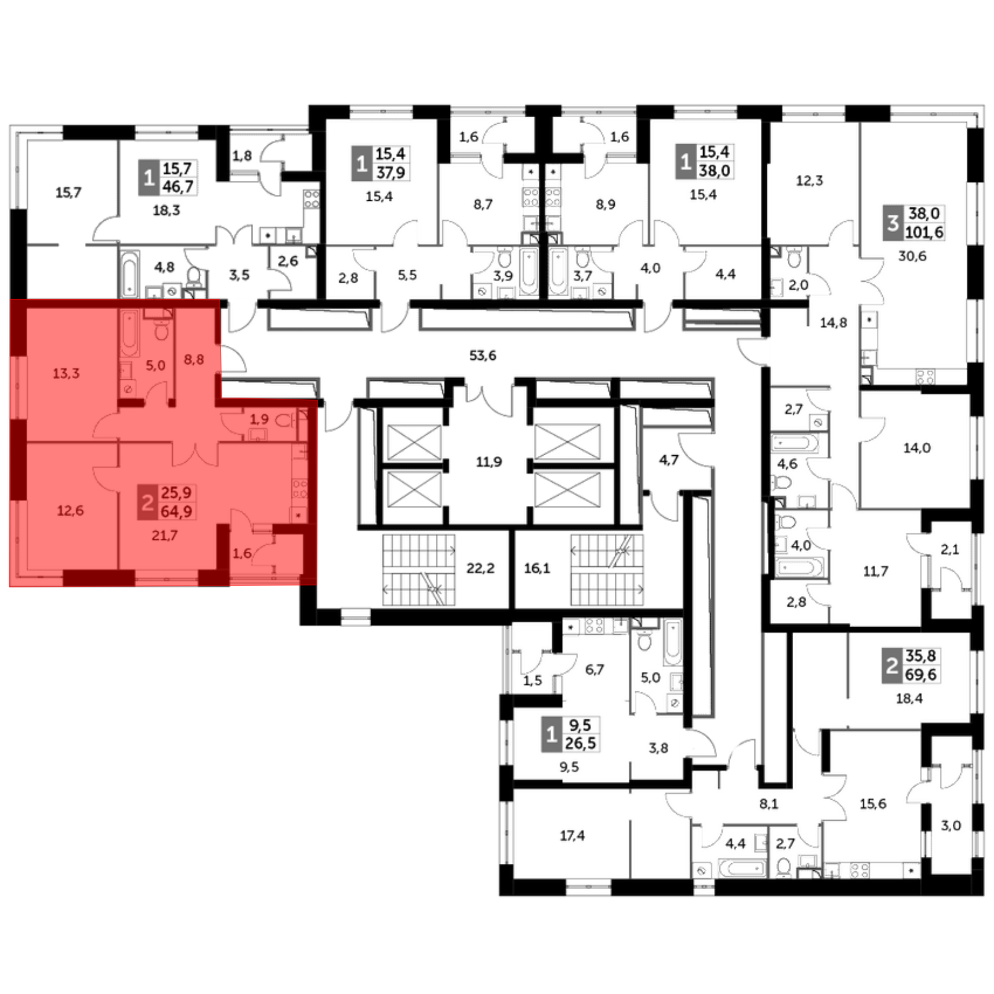 3-к.квартира, 63.3 м², 40 эт. в ЖК Sky Garden Корпус 1