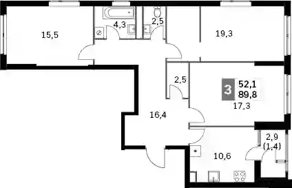 3-к.квартира, 88.4 м², 35 эт. в ЖК Sky Garden Корпус 1