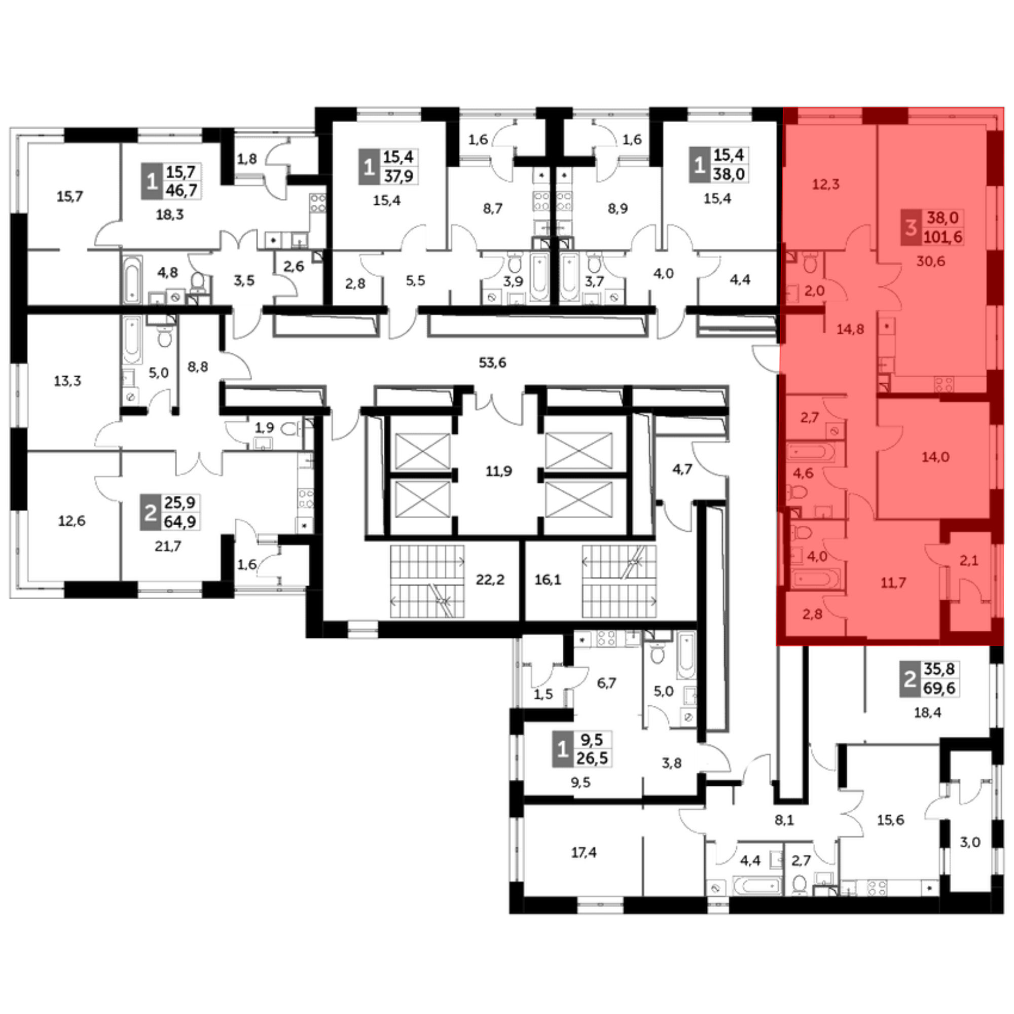4-к.квартира, 103.2 м², 43 эт. в ЖК Sky Garden Корпус 1