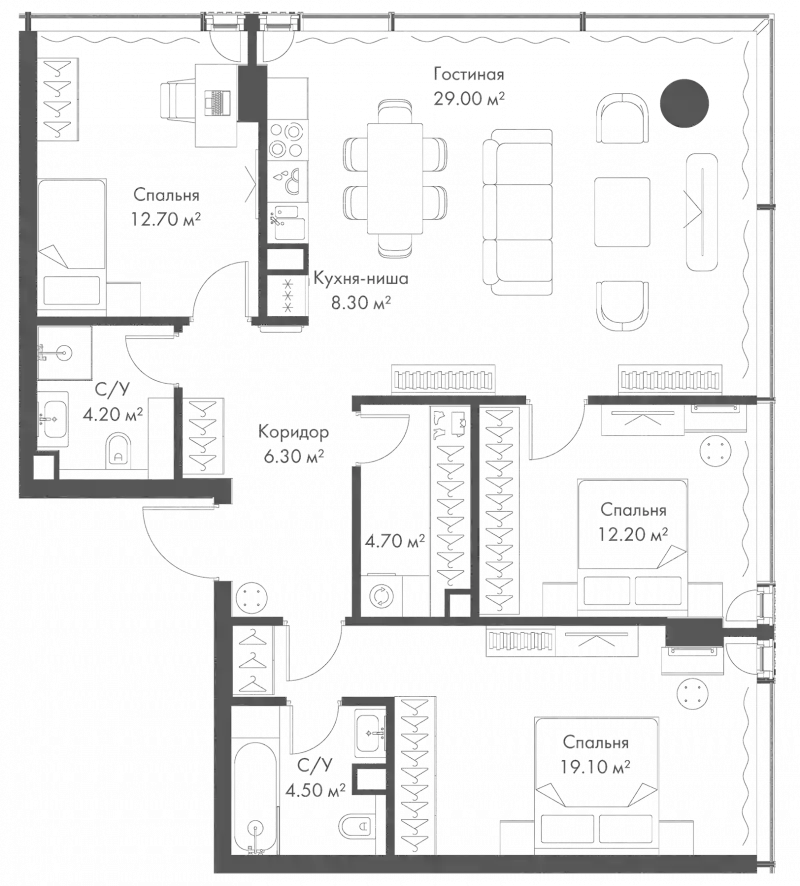 В комплексе апартаментов «SLAVA» предложено множество планировочных решений от компактных студий до просторных трехкомнатных апартаментов. Сдаются они с отделкой «White box» и высотой потолков до 3,28 метра. Во всех апартаментах выполнено панорамное остекление с пониженной теплопроводностью, из окон открываются завораживающие виды на исторический центр Москвы.