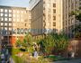 На первых этажах 3 корпусов расположены лаунж-зоны, детский сад, фитнес-центр, кафе и рестораны, супермаркеты, консьерж сервис и другая необходимая инфраструктура. Благоустройство дворов выполнено международным бюро Gillespies и включает в себя: двор-сад, оранжерею под открытым небом, водную композицию, центральный променад, террасу для отдыха, детские игровые и спортивные площадки, деревянные беседки и парковые скамейки, а так же озелененные сады. На закрытой придомовой территории выполнен ландшафтный дизайн, организованы места для отдыха и спроектирована площадь с фонтаном. Для владельцев автомобилей предусмотрен подземный паркинг оборудованный системами подкачки шин и зарядкой для элек­тромобилей.