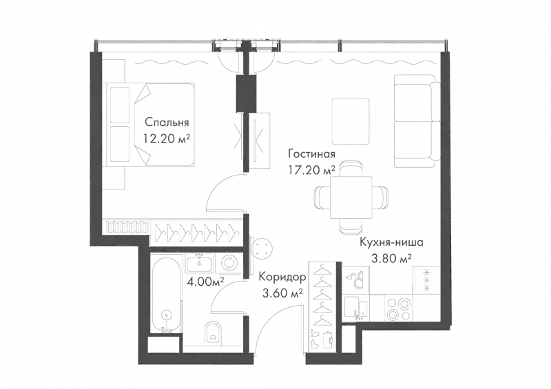 2-к.квартира, 40.8 м², 34 эт. в ЖК SLAVA Корпус F