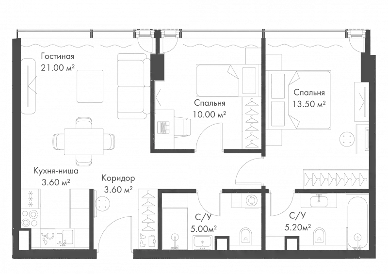 В комплексе апартаментов «SLAVA» предложено множество планировочных решений от компактных студий до просторных трехкомнатных апартаментов. Сдаются они с отделкой «White box» и высотой потолков до 3,28 метра. Во всех апартаментах выполнено панорамное остекление с пониженной теплопроводностью, из окон открываются завораживающие виды на исторический центр Москвы.