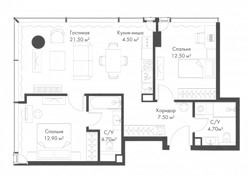 В комплексе апартаментов «SLAVA» предложено множество планировочных решений от компактных студий до просторных трехкомнатных апартаментов. Сдаются они с отделкой «White box» и высотой потолков до 3,28 метра. Во всех апартаментах выполнено панорамное остекление с пониженной теплопроводностью, из окон открываются завораживающие виды на исторический центр Москвы.