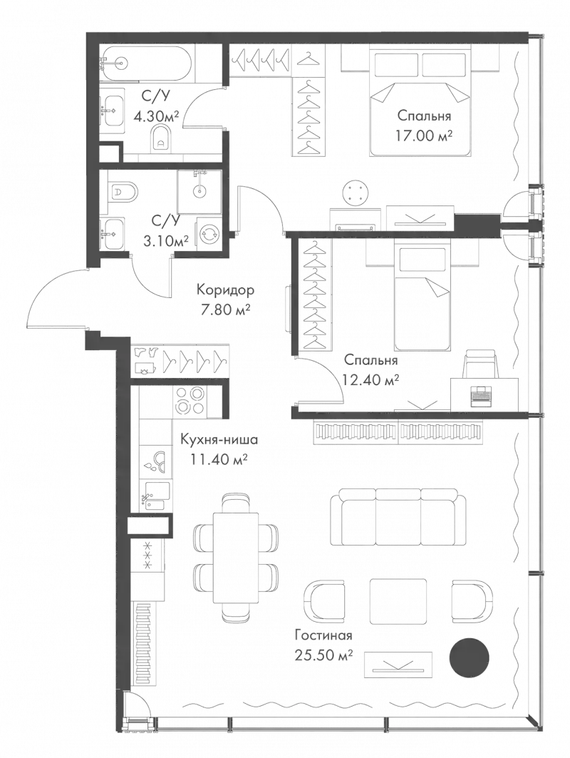 В комплексе апартаментов «SLAVA» предложено множество планировочных решений от компактных студий до просторных трехкомнатных апартаментов. Сдаются они с отделкой «White box» и высотой потолков до 3,28 метра. Во всех апартаментах выполнено панорамное остекление с пониженной теплопроводностью, из окон открываются завораживающие виды на исторический центр Москвы.