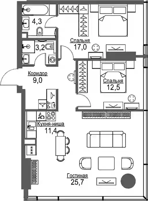 3-к.квартира, 83.1 м², 3 эт. в ЖК SLAVA Корпус F
